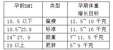 对孕前标准BMI 的孕妈妈来说, 孕初期(0~3 个月) 增加1~ 2 千克,中期(4~6 个月)增加5~6 千克,末期(7 个月~ 出生)增加5~ 6 千克较为合理。