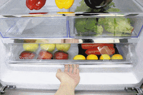 直接入口的食物要放在上面两层,比如剩饭菜、酸奶、牛奶、熟食等,而生的食物要放在下面两层,比如生蔬菜、生豆腐等。